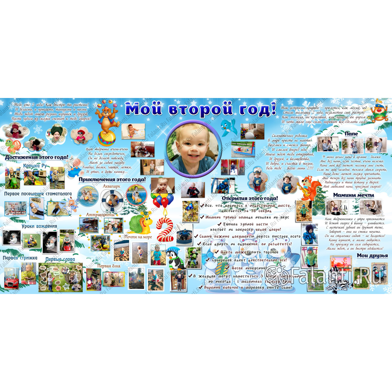 Мы предлагаем создать потрясающий, красочный плакат размером 60х120 см, который станет незабываемым подарком для вашего малыша. На нём можно отразить самые важные и радостные моменты из жизни ребёнка — яркие события, весёлые моменты, достижения и успехи.