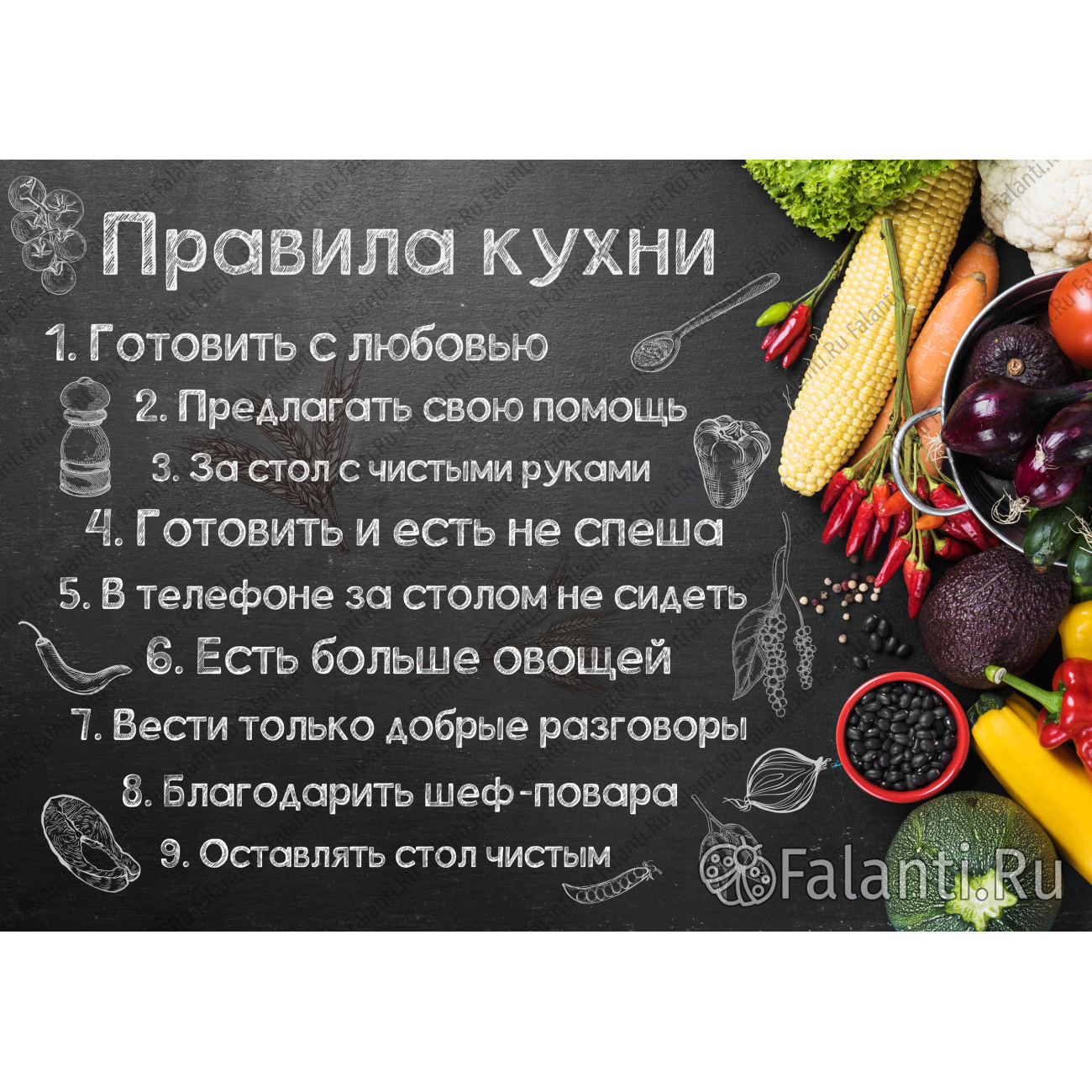 Позвольте вашей кухне обрести собственный характер. Создайте атмосферу, в которой каждый гость почувствует тепло вашего дома. «Правила кухни» станут не просто украшением стен, а настоящим манифестом вашего семейного уюта, отражением тех ценностей, которые вы храните в своём сердце.