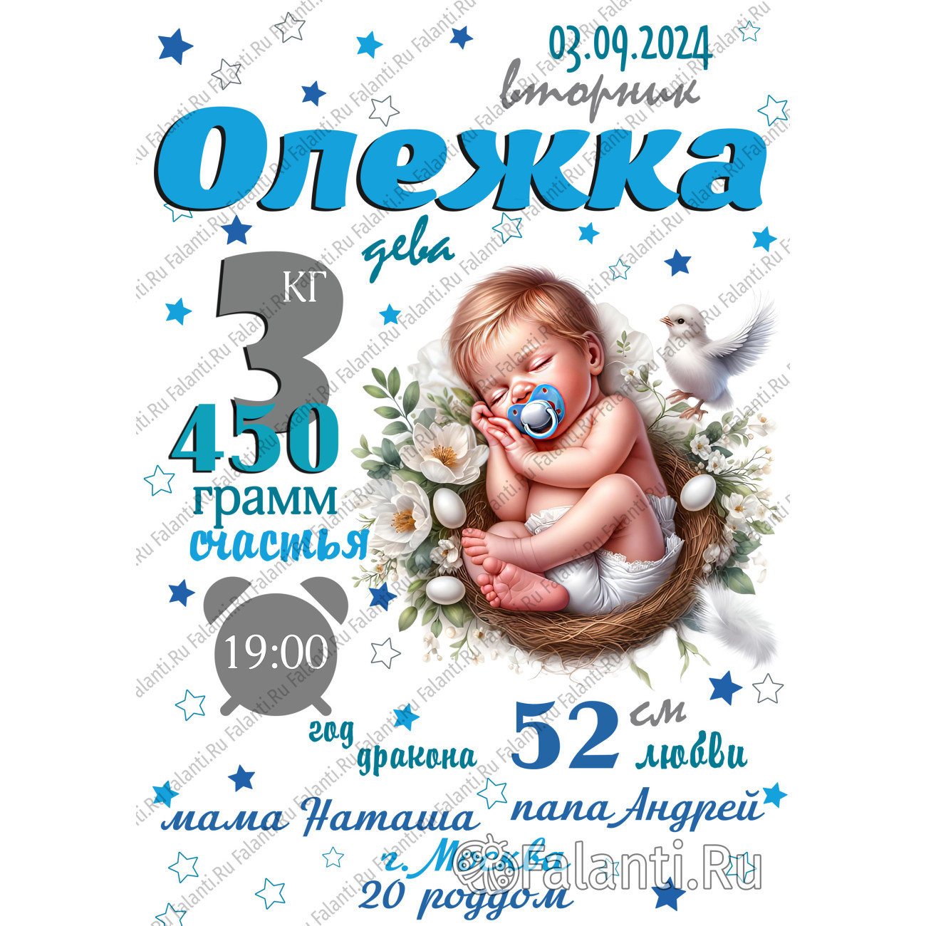 - Изображение: милый образ новорождённого мальчика, словно застывший в моменте первого вздоха, добавляет трогательности и теплоты. Этот элемент делает плакат не просто украшением, а настоящим произведением искусства, способным растопить даже самое холодное сердце.