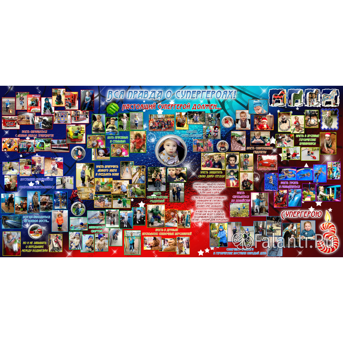 Такой плакат не только порадует ребёнка в день рождения, но и станет прекрасным украшением его комнаты. Он будет напоминать о весёлом празднике и вызывать улыбку каждый раз, когда сын будет смотреть на свои фотографии в компании любимых героев.