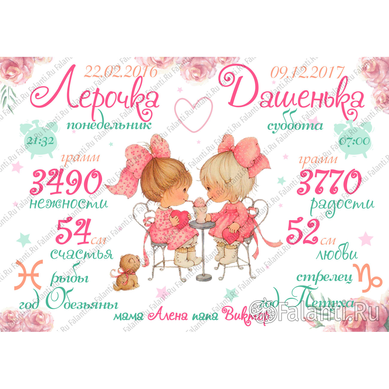 Мечтаете сохранить самые трогательные моменты появления на свет ваших малышек? Метрика для двойняшек — это не просто плакат, а истинное воплощение любви и нежности, которое станет драгоценной реликвией вашей семьи.