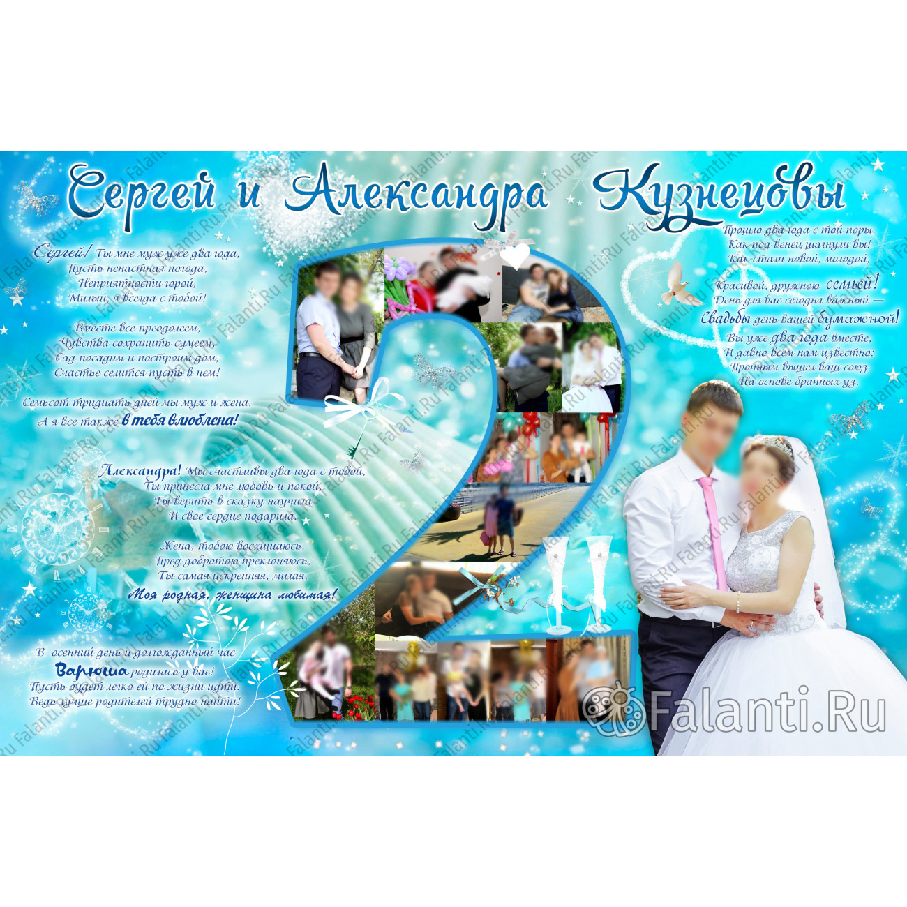 Два года совместной жизни — это значимый рубеж для молодой семьи, который хочется отметить с особым трепетом и радостью. Бумажная свадьба — прекрасный повод вспомнить все яркие и счастливые моменты, пережитые за это время. И что может быть лучше, чем запечатлеть их на красивом поздравительном плакате?