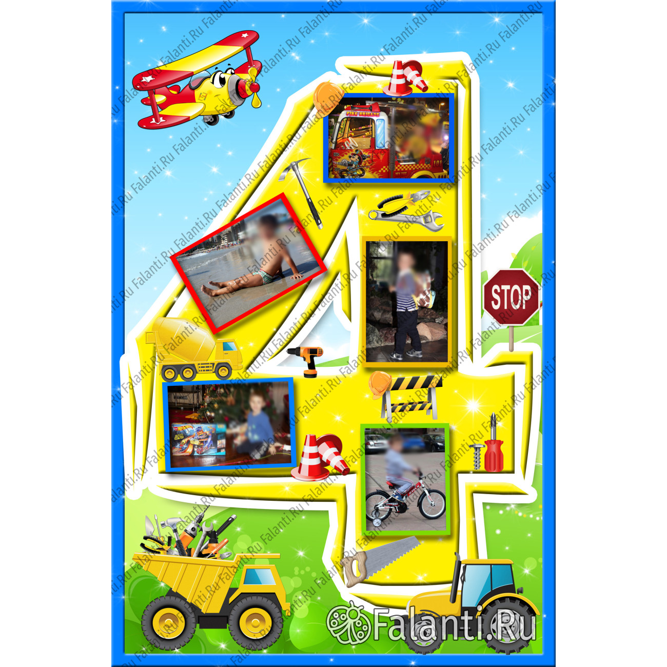 Подарите своему малышу незабываемые эмоции с этим чудесным плакатом! Он станет ярким акцентом праздника и любимым украшением детской комнаты, напоминая о том особенном дне, когда вашему маленькому строителю исполнилось четыре года.