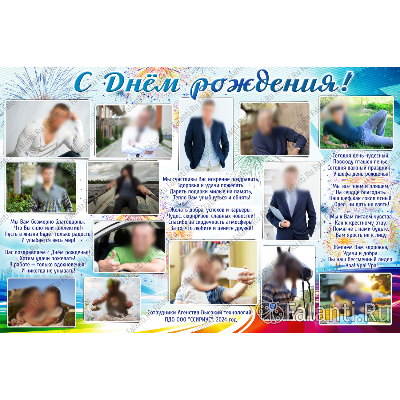 Ищете особенный способ поздравить близкого человека с Днём рождения? Наша стенгазета — идеальный выбор для тех, кто хочет сделать акцент на самых значимых моментах. Благодаря небольшому количеству фотографий (12–14 штук), каждая из них будет представлена в крупном формате, что позволит лучше разглядеть и прочувствовать каждый запечатлённый момент.