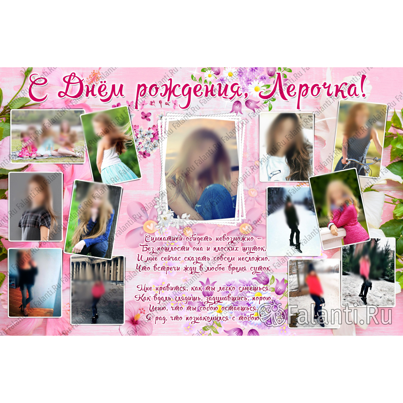 На плакате будут размещены 14 фотографий, каждая из которых запечатлеет яркие и радостные моменты из жизни вашей подруги. Эти снимки будут напоминать о весёлых встречах, путешествиях и других значимых событиях, которые вы пережили вместе.