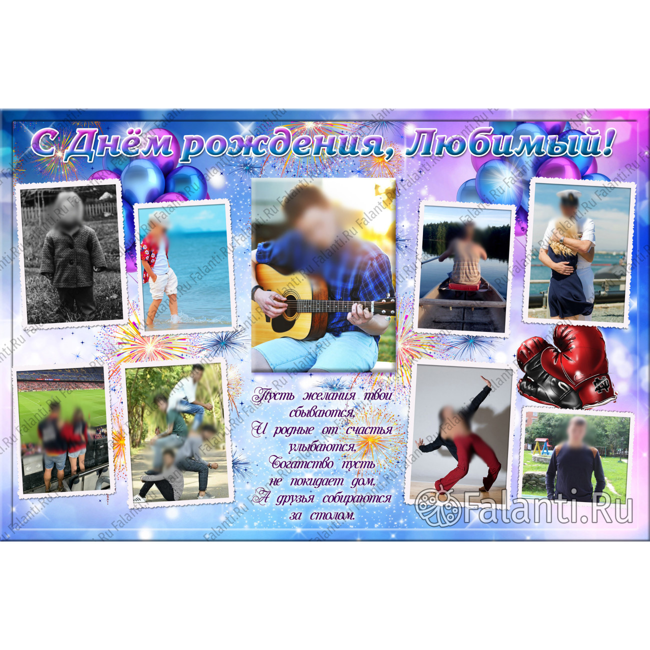 Мы создаём уникальный и запоминающийся плакат, который станет прекрасным подарком для вашего близкого человека. На плакате будут размещены фотографии именинника, отражающие самые важные и яркие моменты его жизни.
