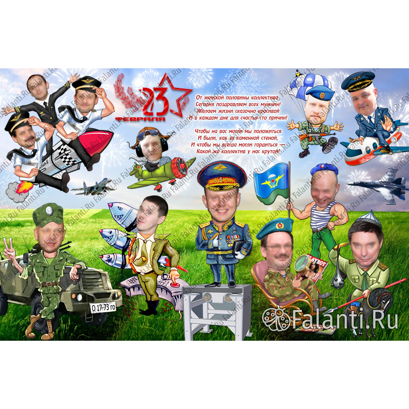 Представляем Вам крутой плакат ко Дню защитника Отечества, который точно поднимет настроение вашим коллегам! На нём — весёлый дружеский шарж, где ваши коллеги станут настоящими звёздами праздника. А тёплые слова поздравлений сделают этот день ещё более особенным!